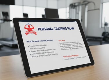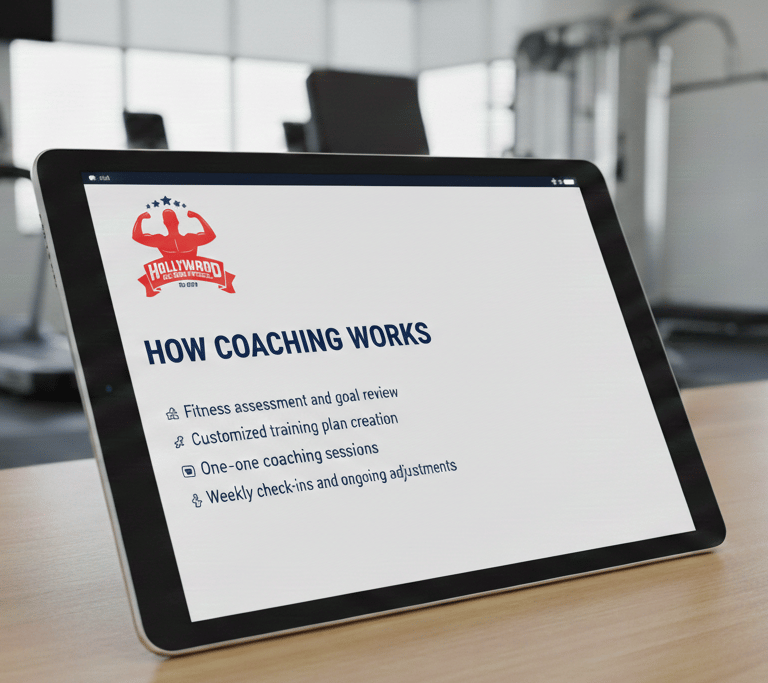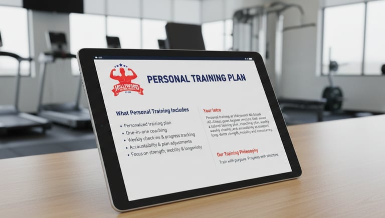 Personal training at Hollywood All-Star Fitness goes beyond workouts. Each client receives a tailored training plan, one-on-one coaching, weekly check-ins, and accountability designed to support long-term strength, mobility, and consistency.
